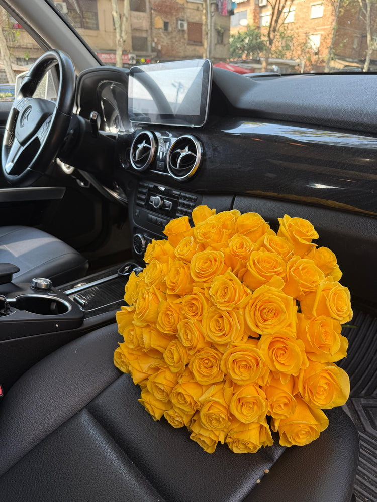 Buqetë me Trëndafila të Verdhë - një zgjedhje e përsosur për të shprehur gëzim, mirënjohje dhe optimizëm. Çdo trëndafil është zgjedhur me kujdes për cilësinë dhe ngjyrën e tij të ndritshme, duke krijuar një kombinim që rrezaton ngrohtësi dhe elegancë. Ideale për ditëlindjet, përvjetoret ose për të ndriçuar çdo hapësirë me ngjyrën e diellit. Këto lule të freskëta zgjaten më gjatë me kujdesin e duhur dhe janë të sigurta për të bërë përshtypje të paharrueshme.